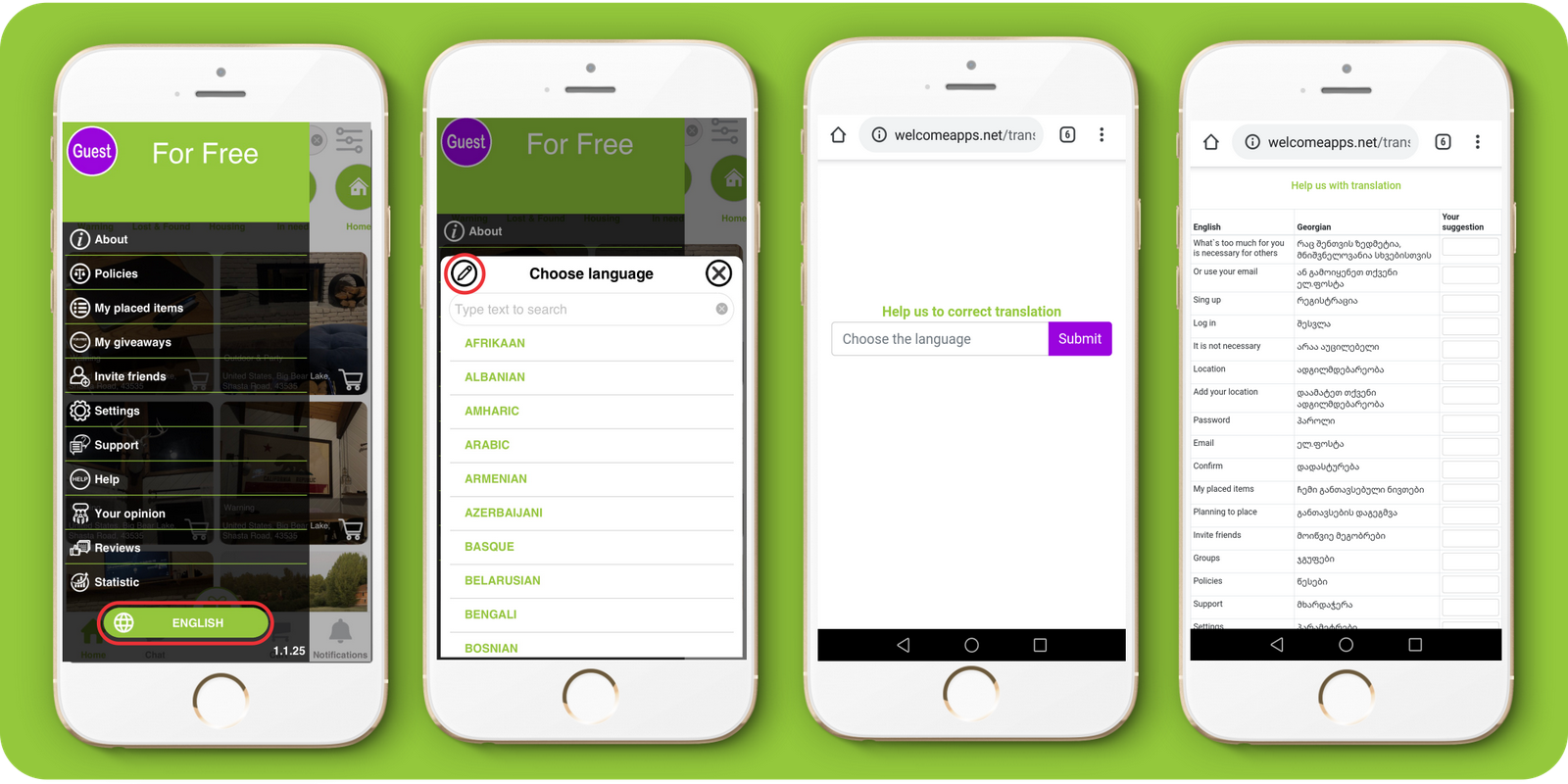 If you come across an incorrectly translated word in your language, you can help us and send us the correctly translated version.