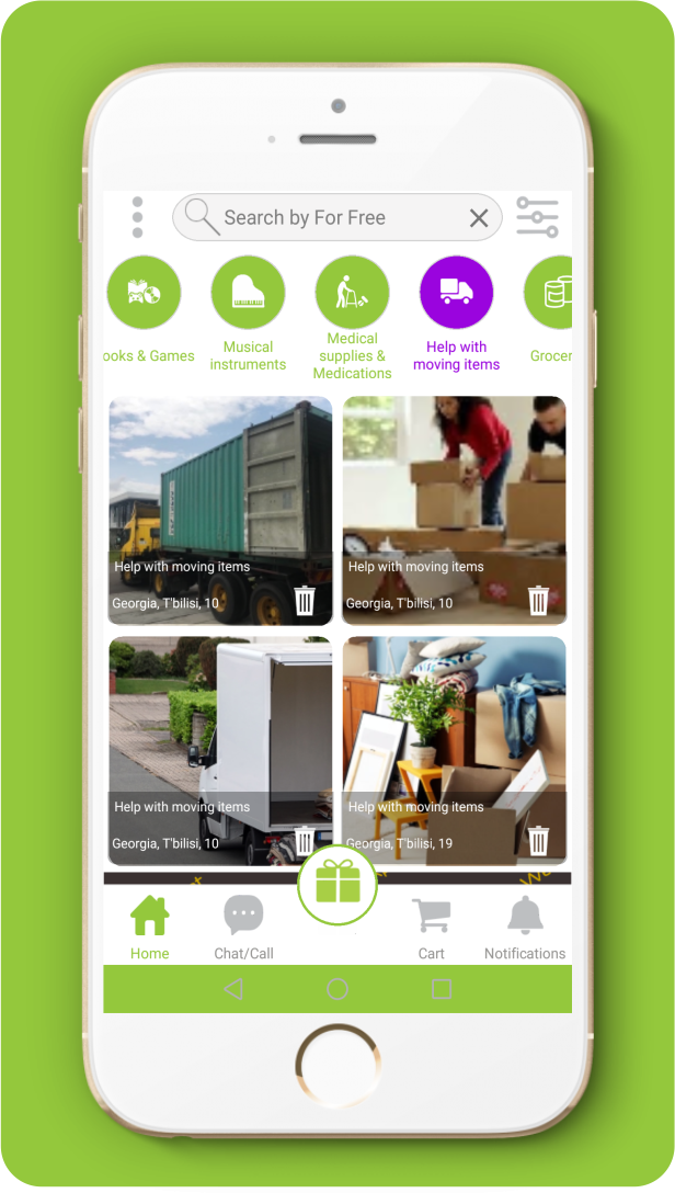 You can receive help for free from this page or help others with moving if they can not afford it.